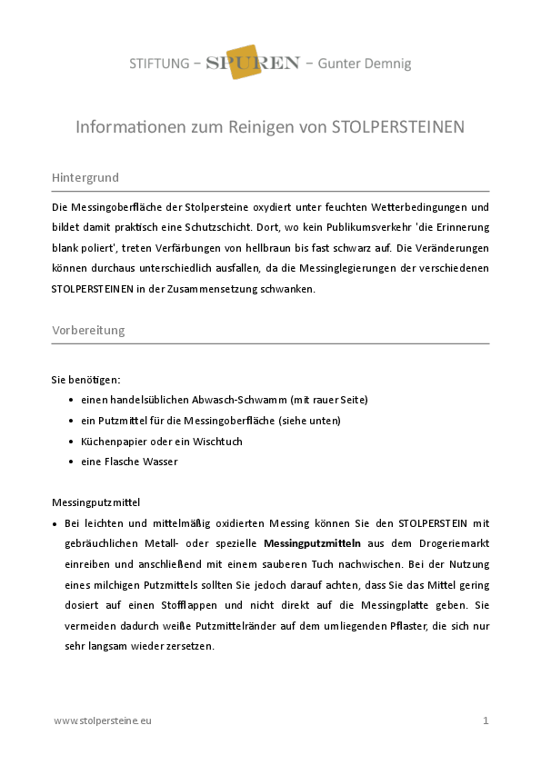 Wer Steine putzen möchte, trägt sich in die Lübecker Liste ein. So hoffen wir, dass alle Lübecker Steine „versorgt“ werden können, und wir freuen uns über zahlreiche Teilnahme!